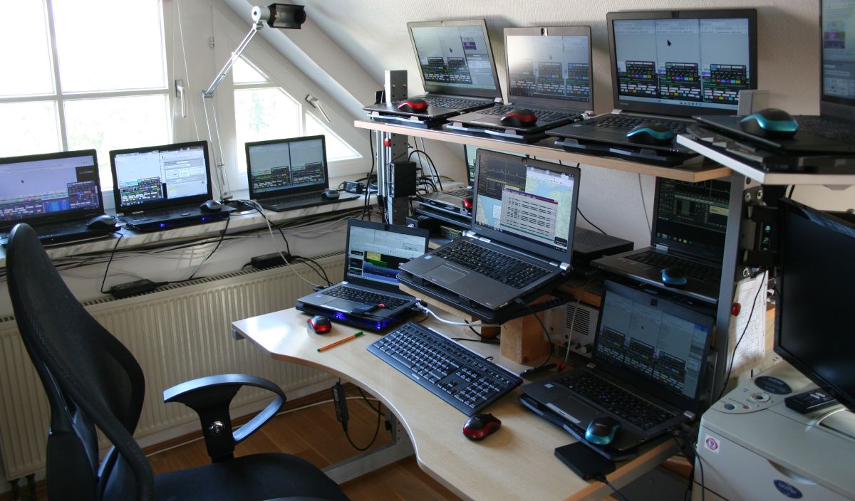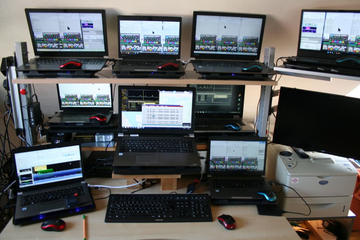 The two Toshiba Laptops on top are running via remote receivers recording ALE signals, as well as the two
